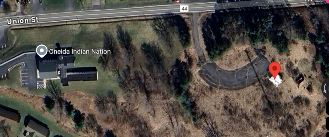 Thanks to Duncan Brown for cleverly locating the Oneida site via its FCC callsign info! The antenna mast is visible via its shadow, and the bunker entrance is likely close to the google maps marker. |